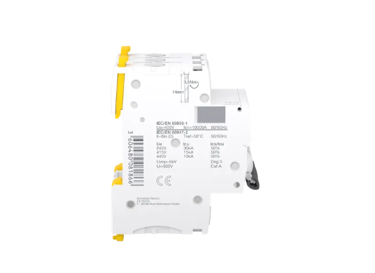Schneider Electric MCB for Protection - Acti9 iC60 Giving you absolute peace of mind when it comes to electrical circuit protection and continuity of service, the miniature circuit breakers (MCB) are especially ideal if you are working within polluted environments and networks. Schneider Electric caters to the industrial segment by delivering the best in class industrial miniature circuit breaker (MCB) for your heavy-duty electrical distribution. You can shop safely at ListrikKita.com because all the items we sell are guaranteed 100% original, officially guaranteed, and can be accompanied by a letter of authenticity of the goods. For more information or to make a large purchase, please contact our sales or marketing team by clicking here. Happy shopping! This Acti9 iC60H is a multistandard low voltage miniature circuit breaker (MCB) with double tunnel terminals. It is a 3P circuit breaker with 3 protected poles, 32A rated current and C tripping curve. The rated short circuit breaking capacity goes up to 30kA at 220VAC to 240VAC conforming to EN/IEC 60947-2 standard and 10000A at 400VAC conforming to EN/IEC 60898-1 standard. It complies with both industrial standard EN/IEC 60898-1 and residential standard EN/IEC 60947-2. This miniature circuit breaker protects circuit against short circuit and overload current. Its unique VisiTrip indicator reduces intervention time by showing the faulty circuit. Its VisiSafe green strip guarantees the physical opening of the contacts to allow downstream maintenance. Its fast closing mechanism independent of manual operation improves its service life. It has an electrical endurance going up to 10000 cycles and a mechanical endurance going up to 20000 cycles. The Ui rated insulation voltage is 500VAC. Its limitation class 3 (according to EN/IEC60898-1) improves downstream circuit protection cost. The product can be clipped on a DIN rail. Its width is 6 pitches of 9mm. Pollution degree is 3. Overvoltage category is IV. The product colour is white (RAL9003). The dimensions are (W) 54mm x (H) 85mm x (D) 78.5mm. The weight is 0.375kg. It has an IP20 degree of protection (as per IEC/EN 60529) on its terminals. The operating temperature is -35°C to 70°C. The storage temperature is -40°C to 85°C. Specification